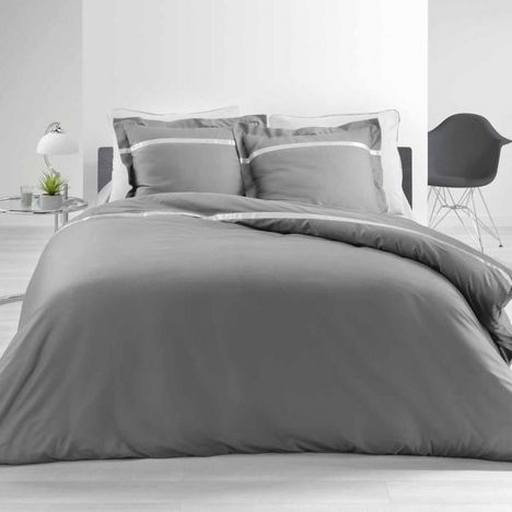 Parure de Lit 3 Pièces Satinea 240x220cm Gris