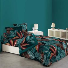 Informations Techniques : Dimensions : Housse de couette : L. 240 x l. 220 cm Drap plat : L. 240 x l. 300 cm Drap housse : L. 140 x l. 190 cm Taies d'oreiller : L. 63 x l. 63 cm Taie de traversin : L. 85 x l. 185 cm Matière : 100% Coton (42 fils/cm2) Spécificités : Confortable & Esthétique Parure de