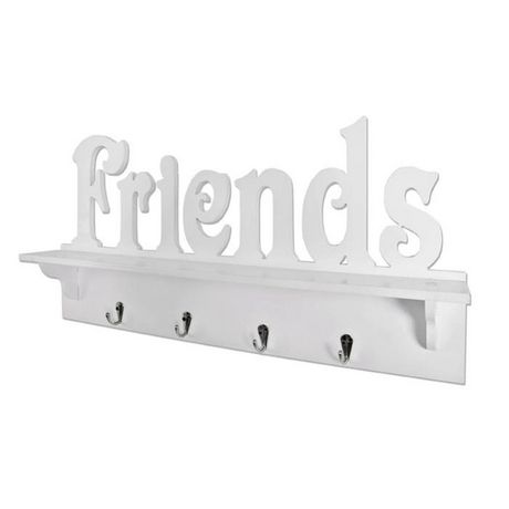 Informations Techniques : Dimensions : L. 60 x l. 9 x H. 30 cm Matière : MDF Spécificités : Pratique & Utile Patère murale 4 crochets chromés Inscription Friends Poids : 1,53 kg Couleur : Blanc
