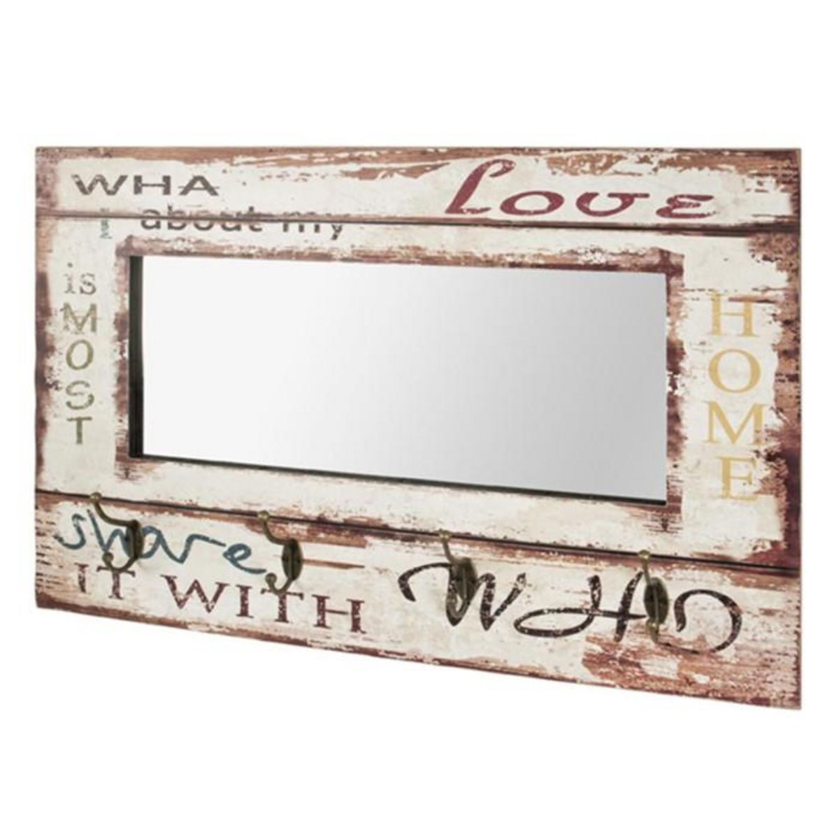 Patère Murale 4 Crochets & Miroir Love 80cm Blanc
