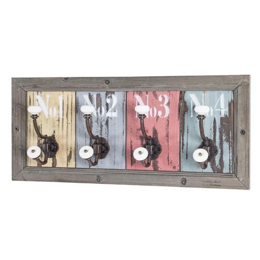 Informations Techniques : Dimensions : L. 48 x l. 10 x H. 21 cm Matière : Bois Massif Spécificités : Tendance & Pratique Patère Murale design Style Vintage & Rétro 4 Crochets Livré monté Facile d'utilisation & d'entretien Nombre de colis : 1 Poids : 1,08 kg Couleur : Multicolore