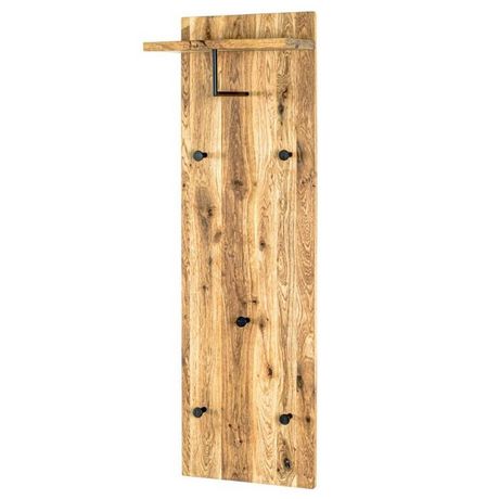 Informations Techniques : Dimensions : L. 30 x l. 20 x H. 100 cm Matières : Bois Massif & Métal Spécificités : Pratique & Tendance Patère Murale 5 Crochets Cintre Étagère Pose Chapeaux Finition : Chêne Huilé Poids : 5,76 kg Couleur : Naturel & Noir