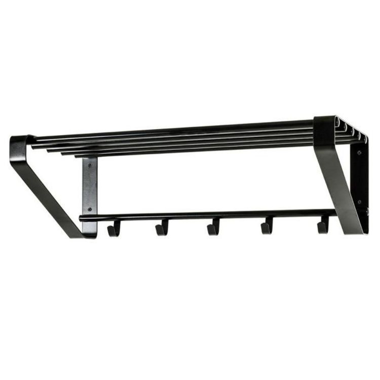Patère Murale 5 Crochets Étagère 65cm Noir