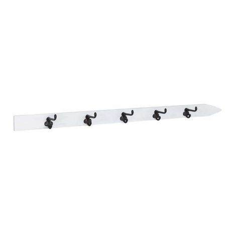 Informations Techniques : Dimensions : L. 102 x l. 10,3 x H. 6,2 cm Matières : 70% Bois (Contreplaqué) & 30% Métal Spécificités : Pratique & Utile Patère murale 5 crochets En forme de ski Poids : 0,72 kg Couleur : Blanc