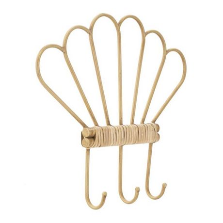 Informations Techniques : Dimensions : L. 37,5 x l. 5 x H. 32,5 cm Matières : Métal, Rotin & Plastique Spécificités : Pratique & Déco Patère murale originale Avec 3 crochets Design coquillage Finition en rotin Poids : 0,3 kg Couleur : Naturel