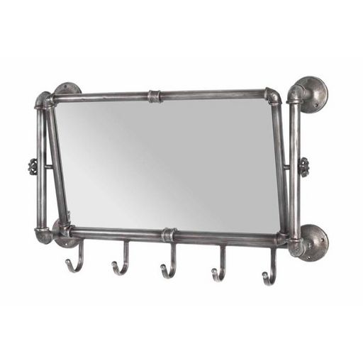 Informations Techniques : Dimensions : L. 75 x l. 16 x H. 45 cm Matière : Acier Spécificités : Tendance & Industriel Patère Murale design Avec Miroir 5 Crochets Poids : 5,76 kg Couleur : Anthracite