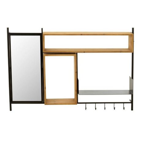Informations Techniques : Dimensions : L. 130 x l. 20 x H. 87 cm Matières : Bois (Sapin), Métal & Verre Spécificités : Tendance & Originale Patère 5 crochets Avec miroir Design bicolore Forme rectangulaire Poids : 12 kg Couleur : Noir & Naturel