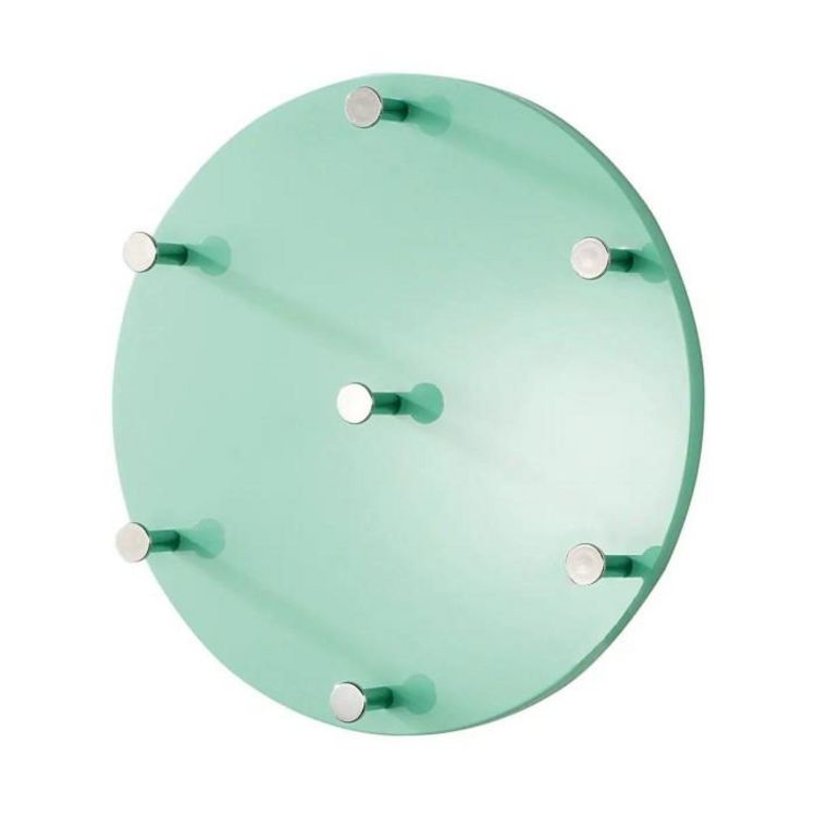Informations Techniques : Dimensions : D. 35 x H. 5 cm Matière : MDF & Acier Spécificités : Tendance & Pratique Patère murale 7 crochets Forme ronde Facile d'utilisation & d'entretien Nombre de colis : 1 Poids : 1,35 kg Couleur : Menthe