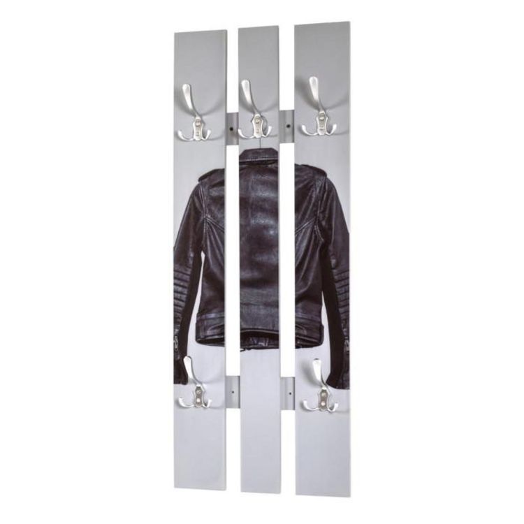 Informations Techniques : Dimensions : L. 40 x l. 9 x H. 100 cm Matières : MDF & Métal Spécificités : Déco & Pratique Patère Murale Motif Blouson en Cuir 5 Crochets Nombre de colis : 1 Poids : 3,51 kg Couleur : Gris & Noir