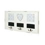 Informations Techniques : Dimensions : L. 49 x l. 3 x H. 26 cm Matière : Bois massif & MDF Spécificités : Tendance & Pratique Patère murale design 3 double crochets et cadre intégré Style vintage & rétro Finition laquée Poids : 1,17 kg Couleur : Blanc