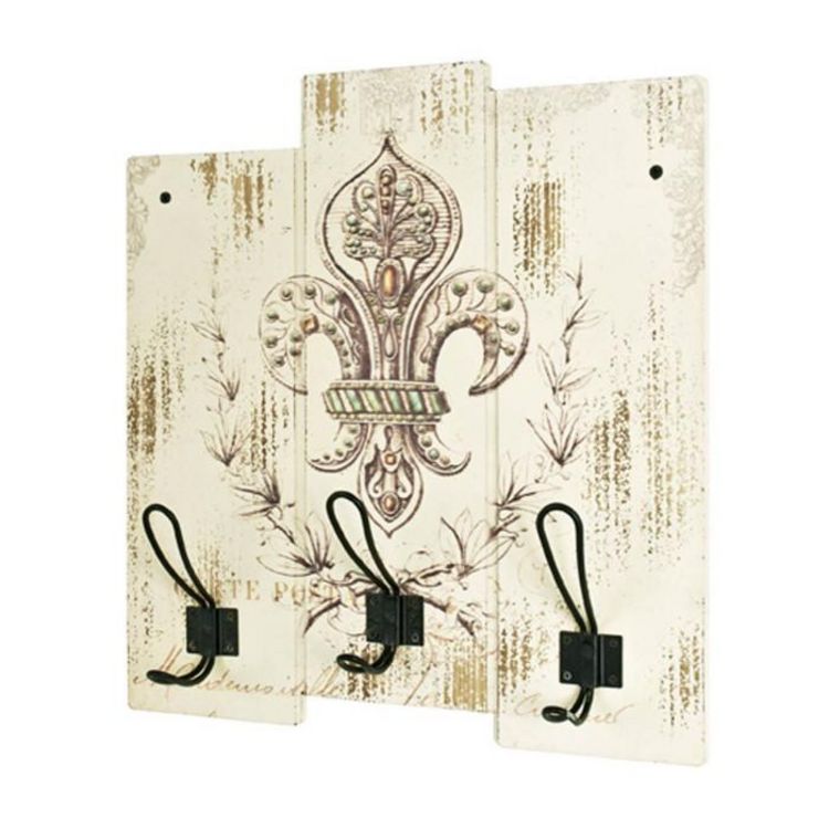 Patère Murale Vintage Fleur De Lys 42cm Beige