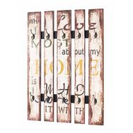 Informations Techniques : Dimensions : L. 70 x l. 10 x H. 100 cm Matières : MDF & Acier Spécificités : Vintage & Pratique Patère Murale 10 Crochets A Motifs Nombre de colis : 1 Poids : 6,57 kg Couleur : Beige & Naturel