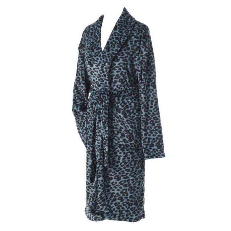 Peignoir Flanelle Imprimé Léopard Bleu