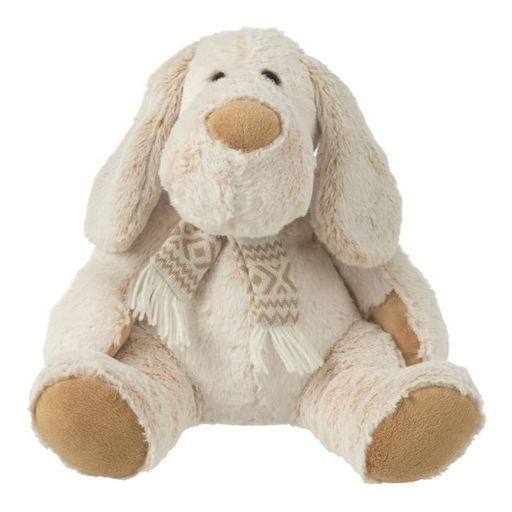 Peluche Chien Assis Écharpe 30cm Beige