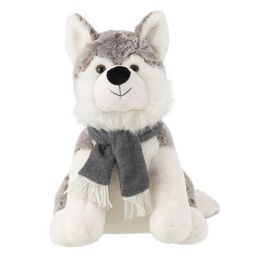 Informations Techniques : Dimensions : L. 40 x l. 25 x H. 35 cm Matière : 100% Polyester Spécificités : Douce & Utile Peluche husky Avec écharpe Vendue à l'unité Poids : 0,45 kg Couleur : Gris