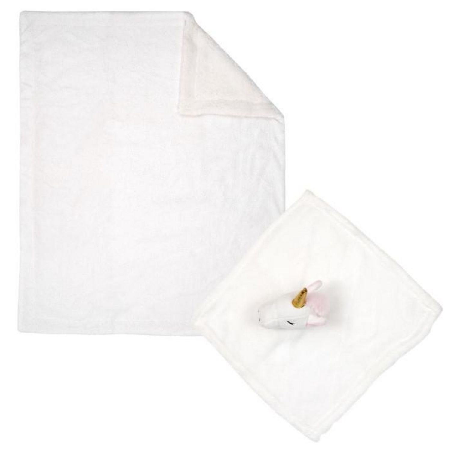 Peluche & Plaid Bébé Licorne 75x100cm Blanc