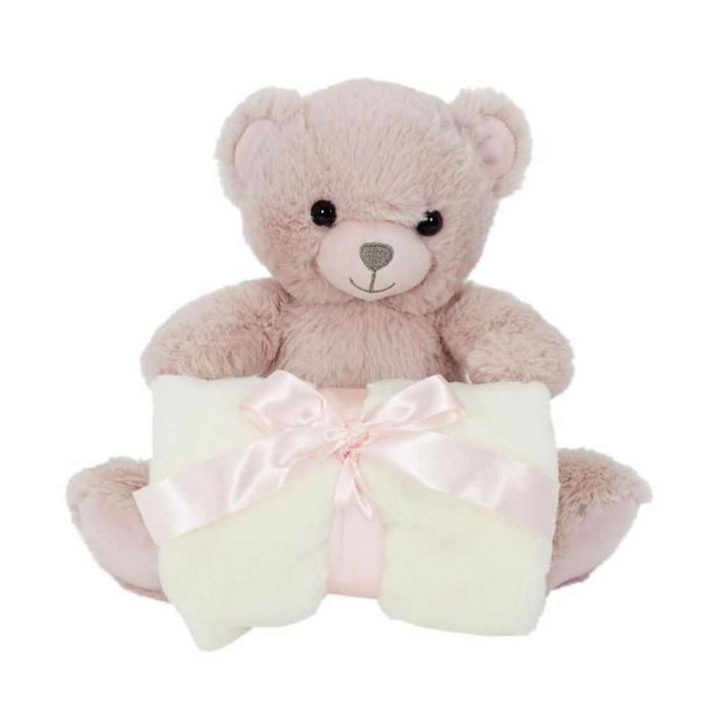 Peluche & Plaid Enfant Ours 70x70cm Rose