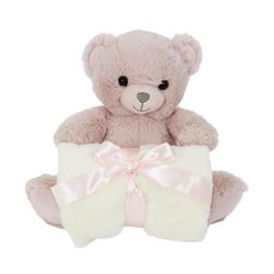 Informations Techniques : Dimensions : L. 20 x l. 15 x H. 20 cm Plaid : L. 70 x l. 70 cm Matières : Polyester Spécificités : Pratique & Utile Peluche & Plaid Enfant Design Ours Doux & Agréable au Toucher Couleur : Rose