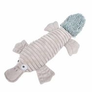 Informations Techniques : Dimensions : L. 38 cm Matière : Polyester Spécificités : Pratique & Efficace Peluche pour Chien Forme Ornithorynque Couleur : Gris