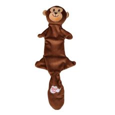 Informations Techniques : Dimensions : L. 45 x l. 18,5 x H. 7 cm Matières : Polyester (90% de matériaux recyclés) Spécificités : Douce & Agréable Jouet Peluche pour Chien Sonore Forme Singe Espace pour Friandises à cacher Poids : 0,09 kg Couleur : Marron