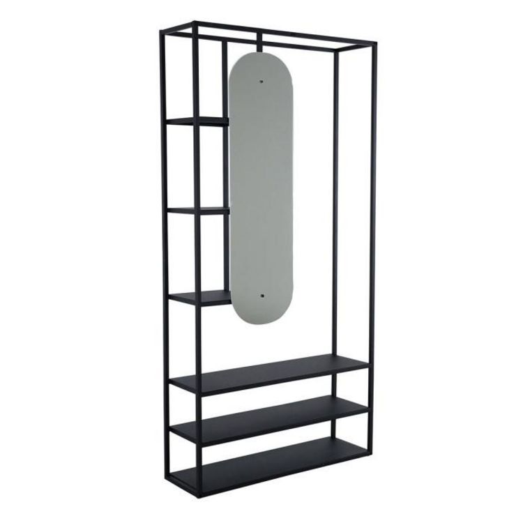 Informations Techniques : Dimensions : L. 100 x l. 30 x H. 200 cm Matières : Acier & Verre Spécificités : Utile & Fonctionnelle Penderie avec miroir Plusieurs étagères Nombre de colis : 2 Poids max supporté : 15 kg Poids : 33,8 kg Couleur : Noir