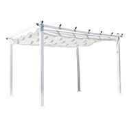 Informations Techniques : Dimensions : L. 345 x l. 395 x H. 246 cm Matières : Aluminium & Polyester Spécificités : Pratique & Utile Pergola design Toit en tissu Poids : 38 kg Couleur : Blanc