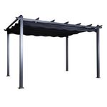 Informations Techniques : Dimensions : L. 395 x l. 295 x H. 245 cm Matières : Aluminium & Polyester Spécificités : Pratique & Utile Pergola design Toit en tissu Poids : 33 kg Couleur : Noir