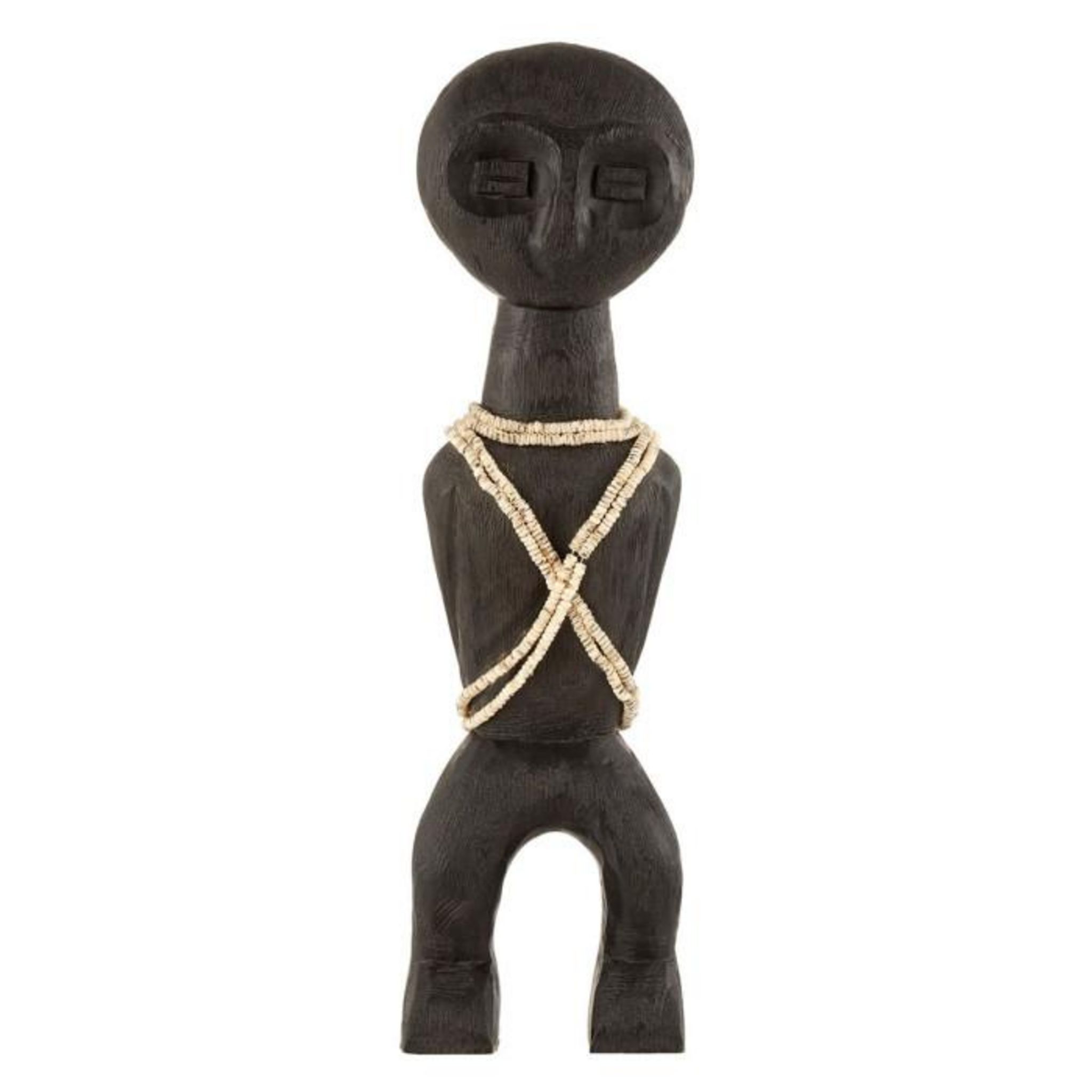Informations Techniques : Dimensions : L. 13 x l. 8 x H. 46,5 cm Matière : Bois (Manguier) Spécificités : Tendance & Pratique Personnage Déco A Poser Style Takwimu Couleur : Noir