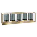 Informations Techniques : Dimensions : L. 70 x l. 15 x H. 20 cm Matières : Verre & Métal Spécificités : Pratique & Utile Photophore design 5 Parties Forme Rectangulaire Poids : 0,2 kg Couleur : Or