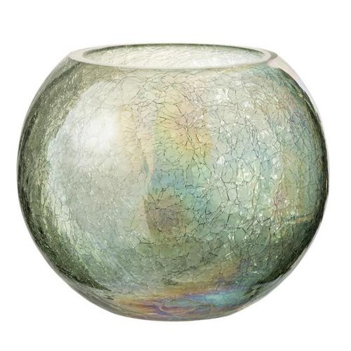 Informations Techniques : Dimensions : D. 19,5 x H. 16 cm Matières : Verre Spécificités : Pratique & Utile Photophore design Forme Ronde Effet Craquelé Poids : 1,15 kg Couleur : Vert