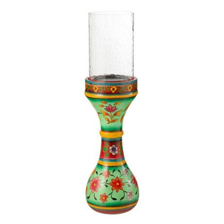 Informations Techniques : Dimensions : L. 13 x l. 13 x H. 46 cm Matières : 90% Bois (Manguier) & 10% Verre Spécificités : Original & Utile Photophore déco Motif imprimé Bougie non incluse Poids : 1,59 kg Couleur : Multicolore