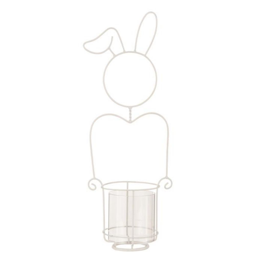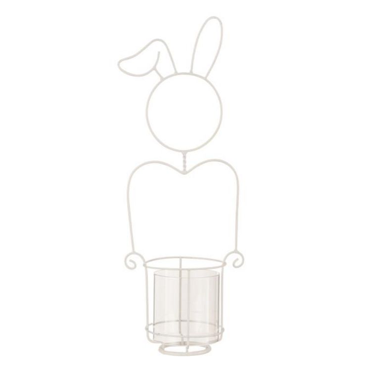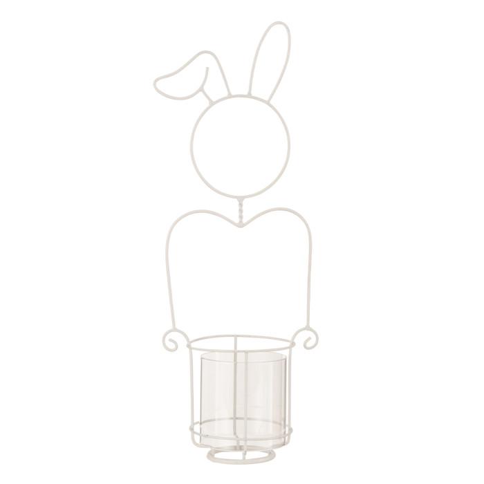Photophore Déco en Métal Lapin 49cm Blanc