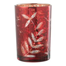 Photophore Déco en Verre Feuilles 18cm Rouge