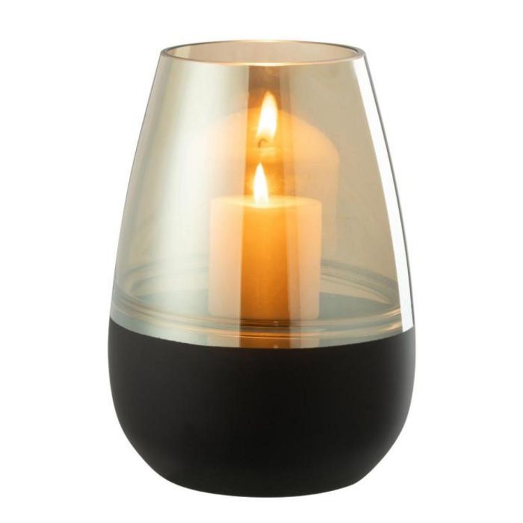 Photophore Déco en Verre Lignes 26cm Noir & Or