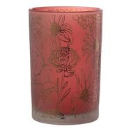 Photophore Déco en Verre Mat Fleurs 18cm Rouge