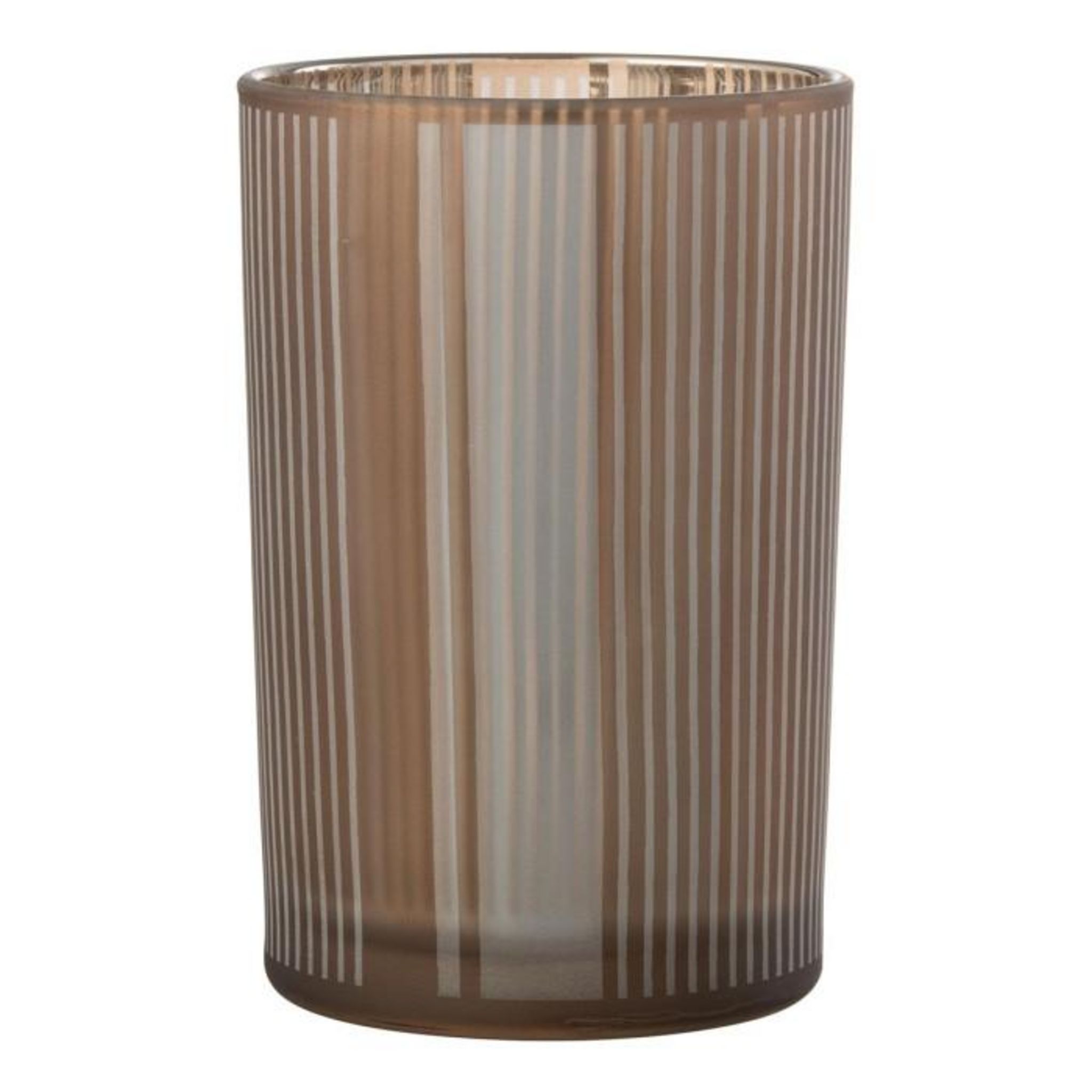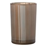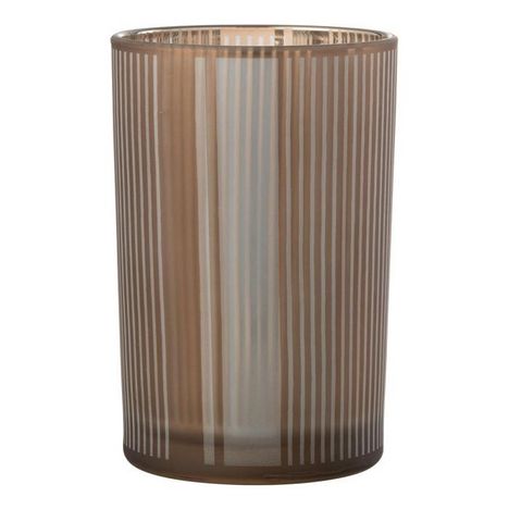 Photophore Déco en Verre Mat Lignes 18cm Marron