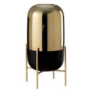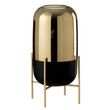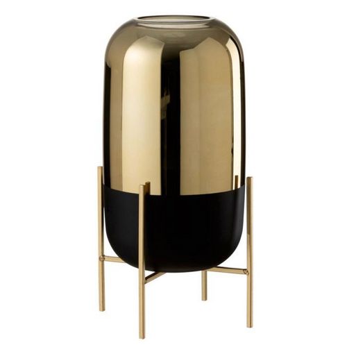 Informations Techniques : Dimensions : L. 18 x l. 18 x H. 37 cm Matière : Verre Spécificités : Design & Moderne Photophore design Avec Socle Forme Boule Facile d'entretien & d'utilisation Poids : 1,44 kg Couleur : Or & Noir