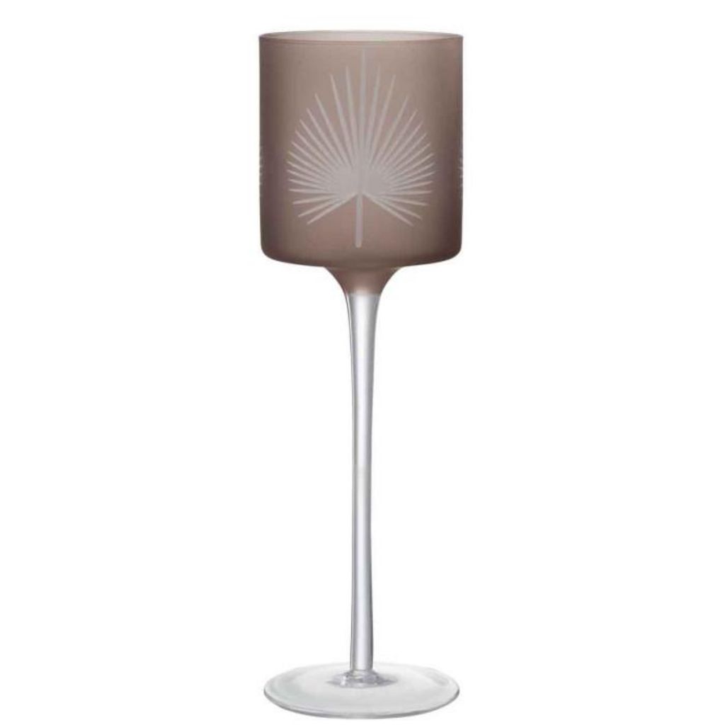 Informations Techniques : Dimensions : D. 9 x H. 30 cm Matière : Verre Spécificités : Pratique & Tendance Photophore Déco Sur Pied Forme Ronde Design Feuilles de Palmier Poids : 0,28 kg Couleur : Marron