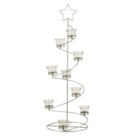 Informations Techniques : Dimensions : L. 24 x l. 24 x H. 70 cm Matières : Métal & Verre Spécificités : Pratique & Utile Photophore déco Forme Arbre Design Spirale Poids : 0,65 kg Couleur : Argent