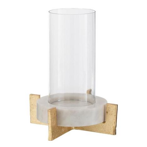 Informations Techniques : Dimensions : D. 20,5 x H. 31,5 cm Matières : Verre & Métal Spécificités : Tendance & Moderne Photophore Design Forme Ronde Base en Marbre Poids : 2,82 kg Couleur : Gris & Champagne