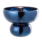 Informations Techniques : Dimensions : L. 23 x l. 23 x H. 17,5 cm Matière : 100% Verre Spécificités : Pratique & Tendance Photophore déco Design bol sur pied Forme ronde Vendu à l'unité Poids : 1,29 kg Couleur : Bleu