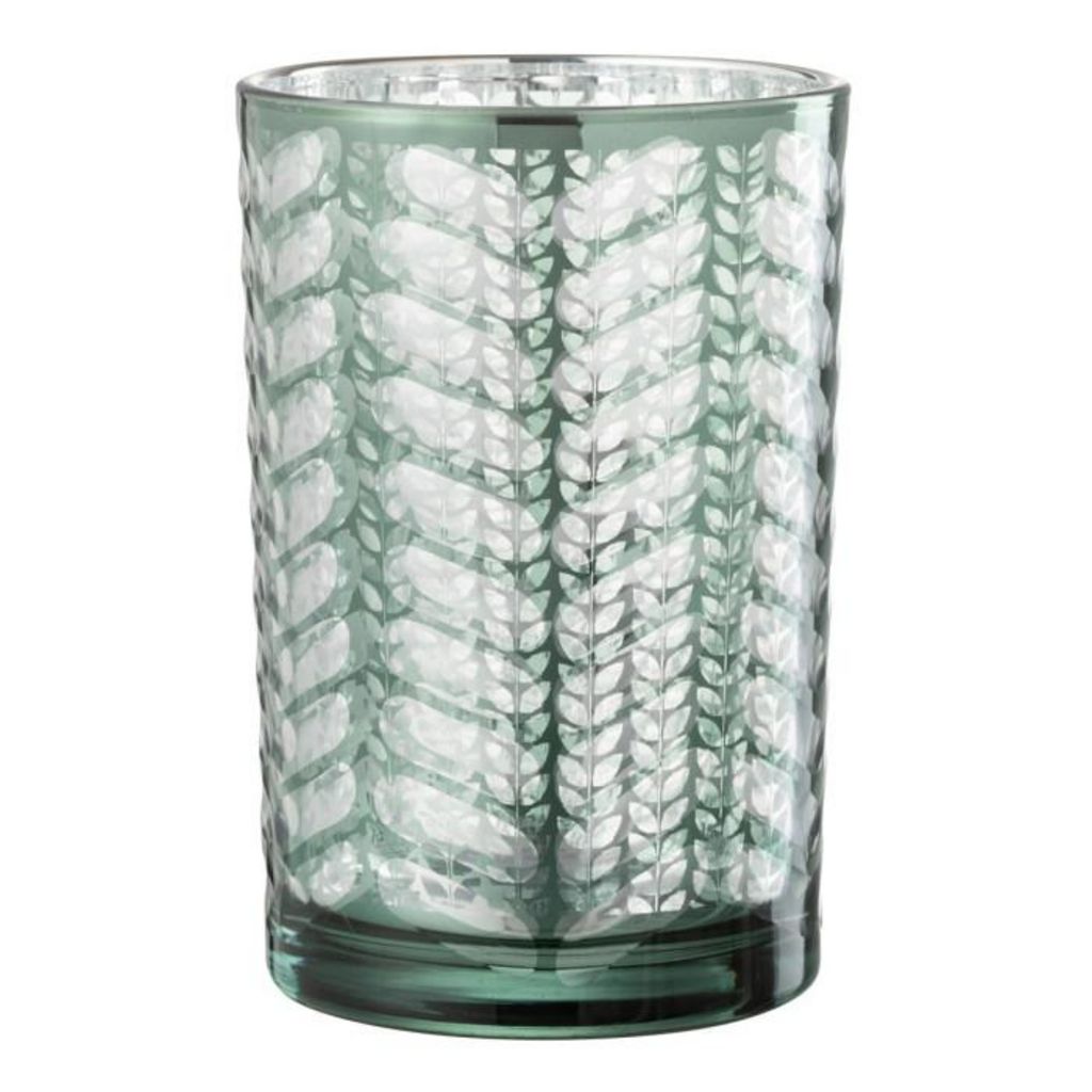 Photophore Design en Verre Chevrons 18cm Vert