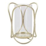 Informations Techniques : Dimensions : L. 16 x l. 16 x H. 21,5 cm Contenant : D. 10 x H. 18 cm Matières : Métal & Verre Spécificités : Déco & Élégant Photophore cylindrique design Contenant pour bougie en verre Poids : 0,45 kg Couleur : Or Clair