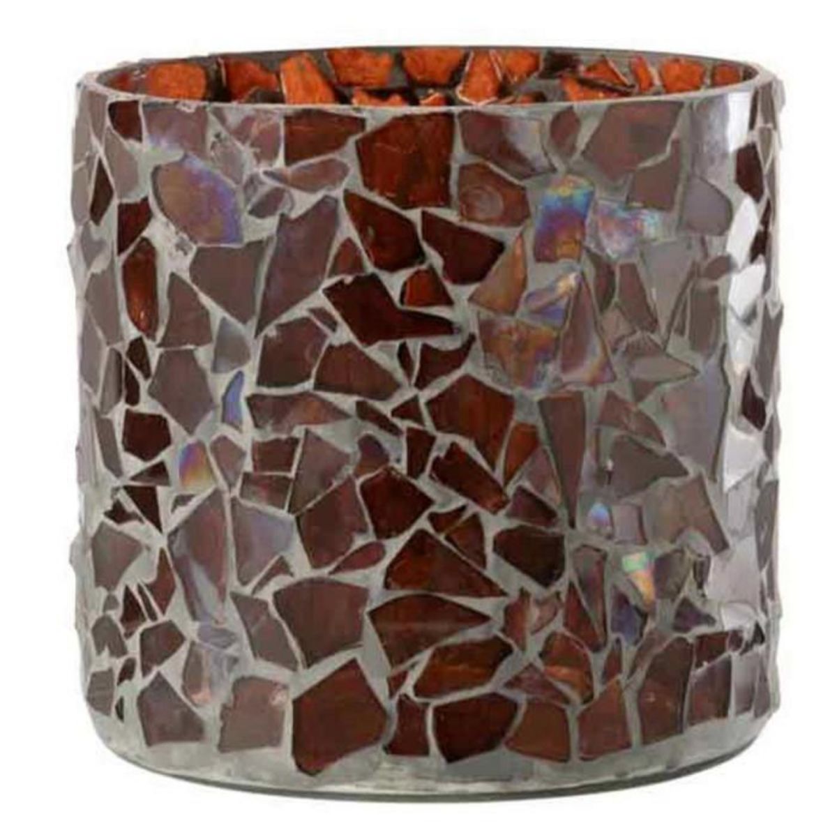 Informations Techniques : Dimensions : D. 16 x H. 16,5 cm Matière : Verre Spécificités : Pratique & Utile Photophore Déco Forme Ronde Design Mosaïque Poids : 0,95 kg Couleur : Marron