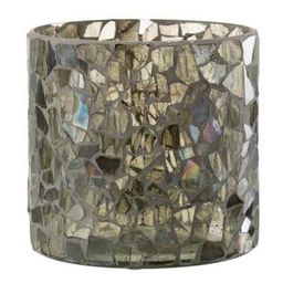 Informations Techniques : Dimensions : D. 16 x H. 16,5 cm Matière : Verre Spécificités : Pratique & Utile Photophore Déco Forme Ronde Design Mosaïque Poids : 1,03 kg Couleur : Vert & Gris