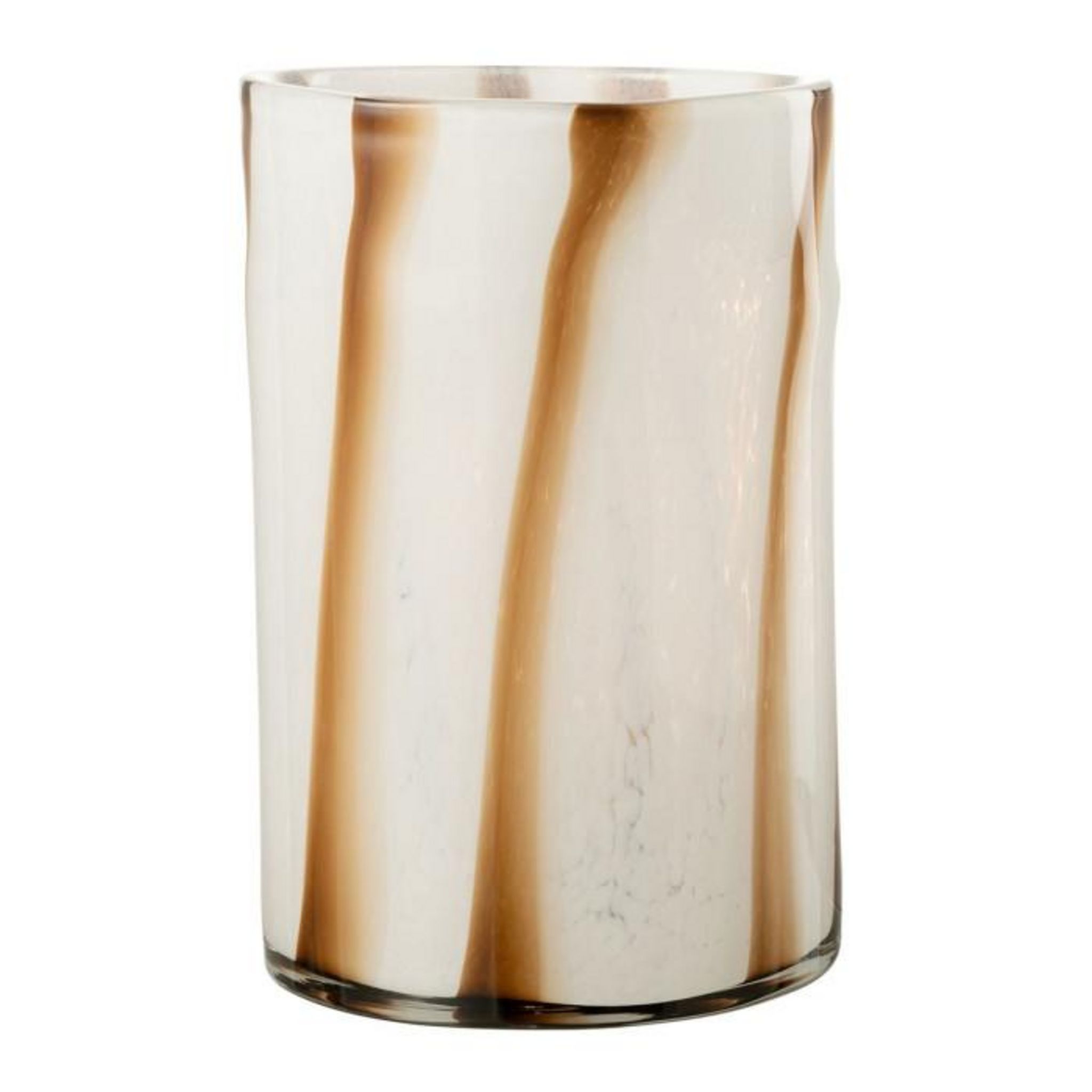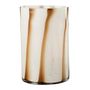 Informations Techniques : Dimensions : D. 20 x H. 30 cm Matière : Verre Spécificités : Déco & Utile Vase Design Forme Ronde Design Lignes Vendu à l'unité Poids : 3,14 kg Couleur : Blanc & Marron