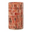 Informations Techniques : Dimensions : L. 12,5 x l. 12,5 x H. 23 cm Matière : 100% Verre Spécificités : Pratique & Utile Photophore déco Motif mosaïque feuilles Bougie non incluse Vendu à l'unité Forme ronde Poids : 1,02 kg Couleur : Orange & Rouge