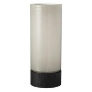 Informations Techniques : Dimensions : D. 14,5 x H. 36,5 cm Matières : 90% Verre & 10% Bois (Saule) Spécificités : Pratique & Tendance Photophore cylindrique Vendu à l'unité Poids : 2,39 kg Couleur : Gris & Noir