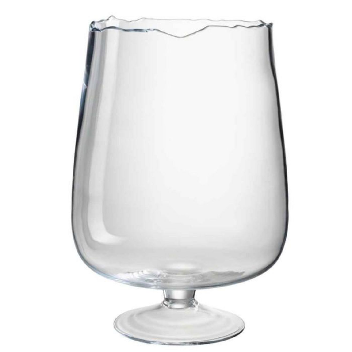 Informations Techniques : Dimensions : D. 32 x H. 45 cm Matière : Verre Spécificités : Tendance & Chic Photophore Design Forme Ronde Bord Irrégulier Poids : 2,5 kg Couleur : Transparent