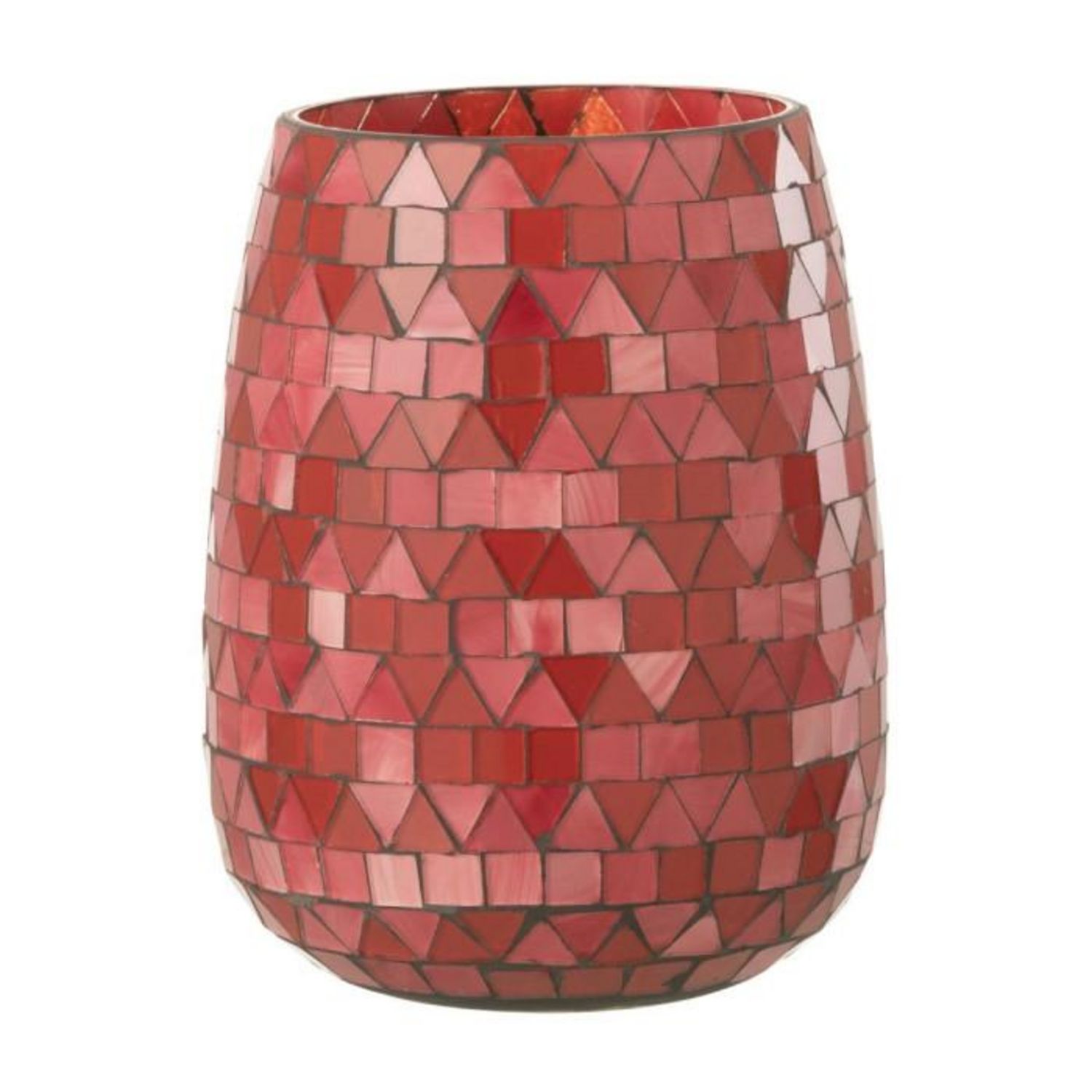 Informations Techniques : Dimensions : L. 12,5 x l. 12,5 x H. 16 cm Matière : 100 % Verre Spécificités : Pratique & Tendance Photophore déco Design mosaïque triangle Bougie non incluse Forme ronde Poids : 0,61 kg Couleur : Rouge & Rose